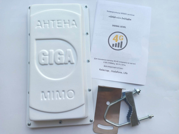 3G/4G/LTE антенна панельная GIGA v.2 с широким диапазоном приема. Предназначена для улучшения качества сигнала сотовой сети операторов Киевстар, Vodafone UA, Lifecell. Антенна имеет широкий угол приема, проста в настройке и занимает мало места, оснащена удобным креплением на трубу или мачту и выходом под F-коннекторы для легкости подключения для подключения к модему по технологии MIMO, при которой передача и прием данных осуществляется отдельными элементами, что позволяет увеличить скорость.