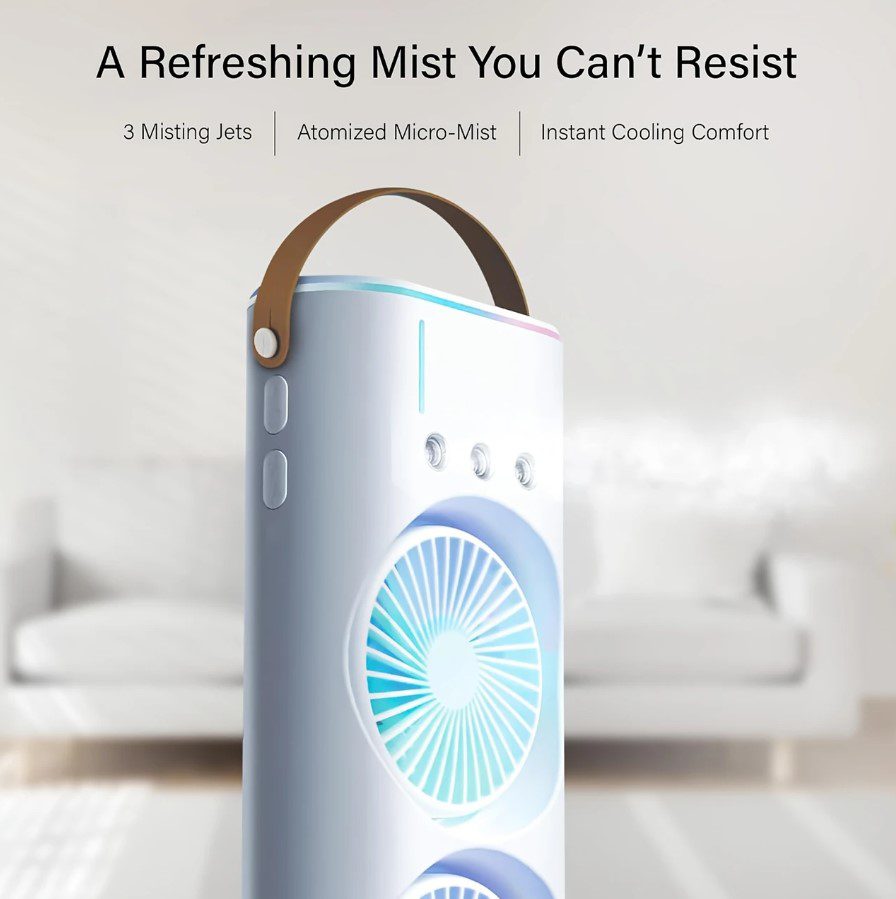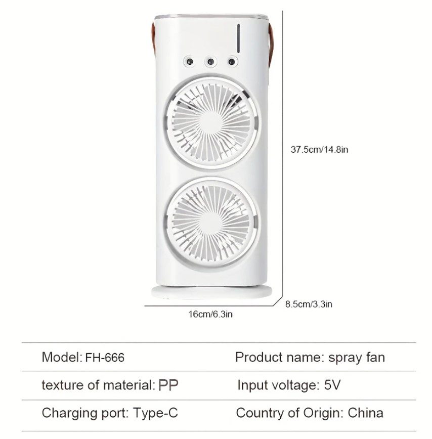 Портативный вентилятор Voltronic T1818, увлажнение, подсветка, Air Cooler Fan White