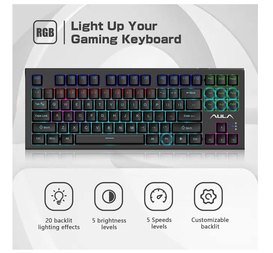 - Механические коричневые тактильные переключатели: клавиатура AULA F3032 оснащена коричневыми переключателями (нет горячей замены).