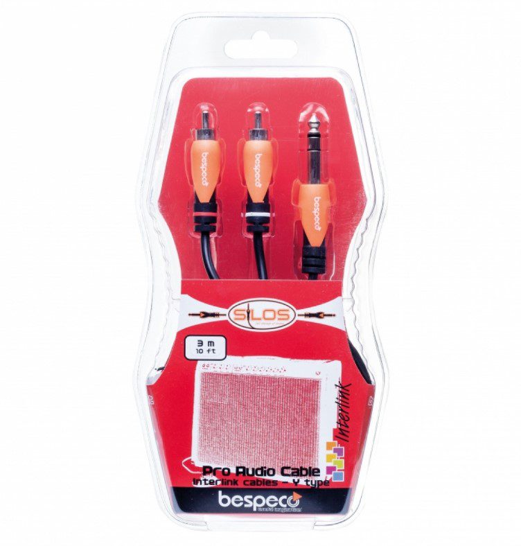 Готовый соединительный кабель BESPECO SLYSRM300 серии SiLOS. Длинна кабеля: 3 м Разъёмы: 1х джек «стерео» — 2х RCA «тюльпан».