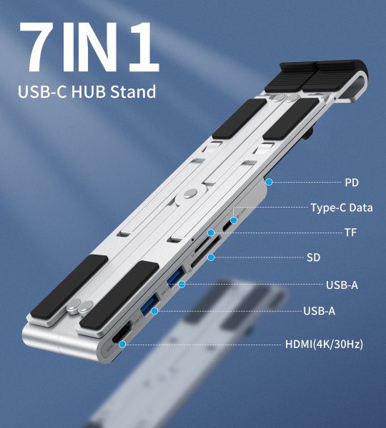 - Комбинация подставки для ноутбука и концентратора USB-C