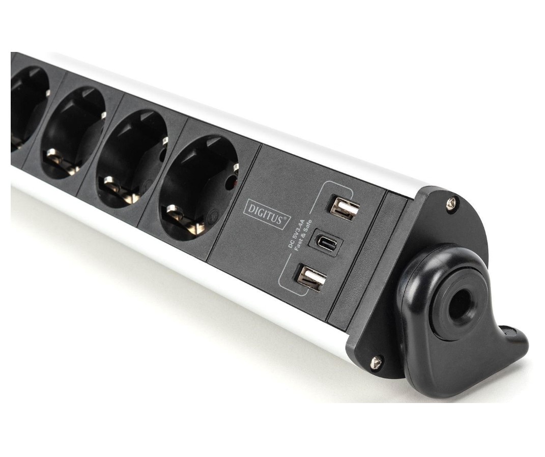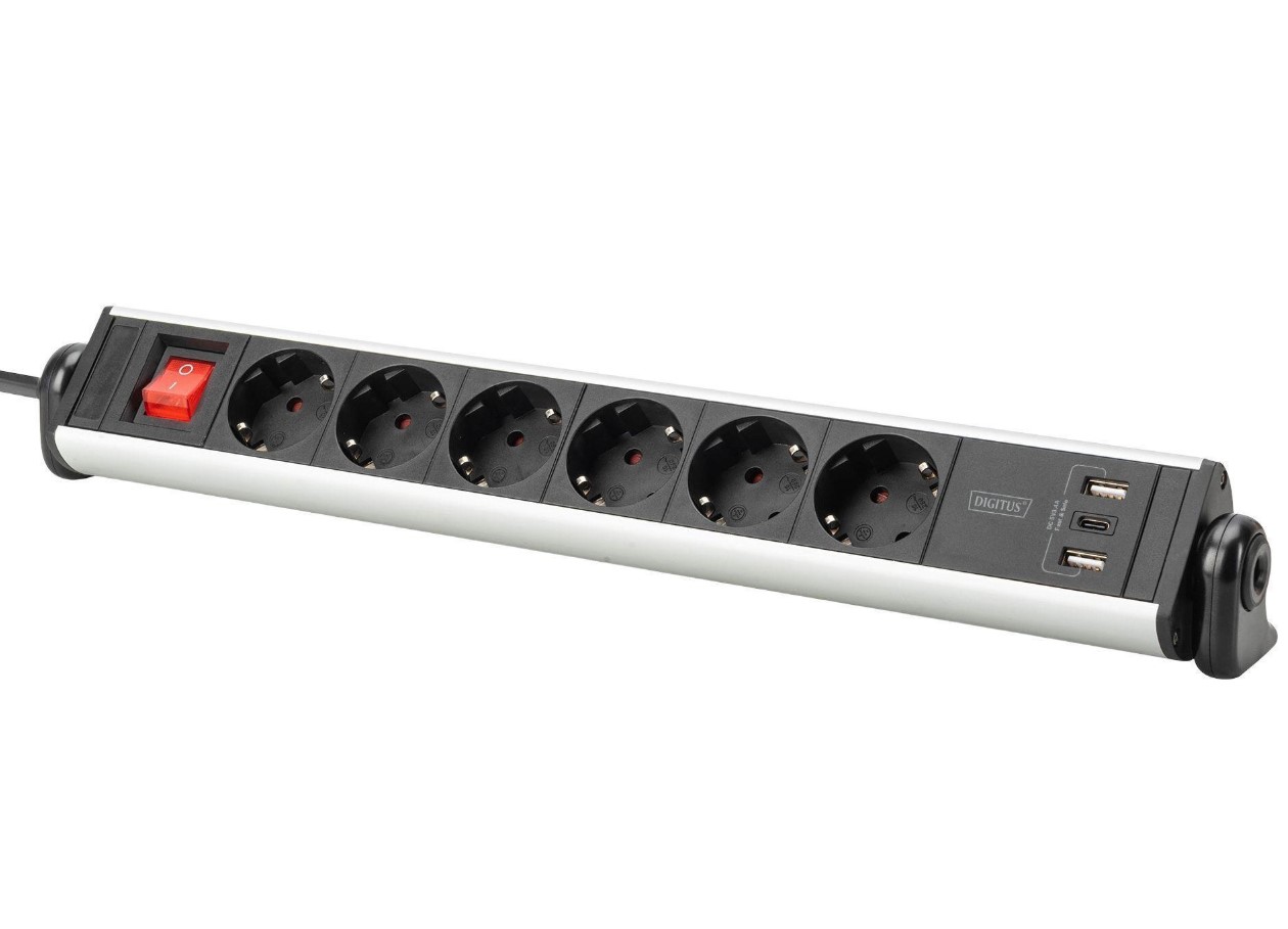Блок розеток DIGITUS Office DA70624 объединяет сетевые розетки и порты USB в одном компактном корпусе. Шесть розеток Schuko с угловым расположением позволяют удобно подключать разные типы вилок. Три порта USB обеспечивают зарядку мобильных устройств без отдельных адаптеров. Алюминиевый корпус дополняет современный вид рабочего пространства. Встраиваемый выключатель повышает удобство ежедневного использования.