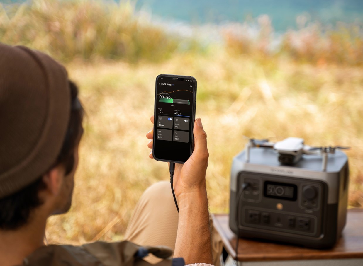 Быстро подключайтесь и управляйте удаленно станцией RIVER 2 Max со смартфона через Wi-Fi или Bluetooth. Легко проверяйте данные о зарядке, настройке и включайте/выключайте приборы.