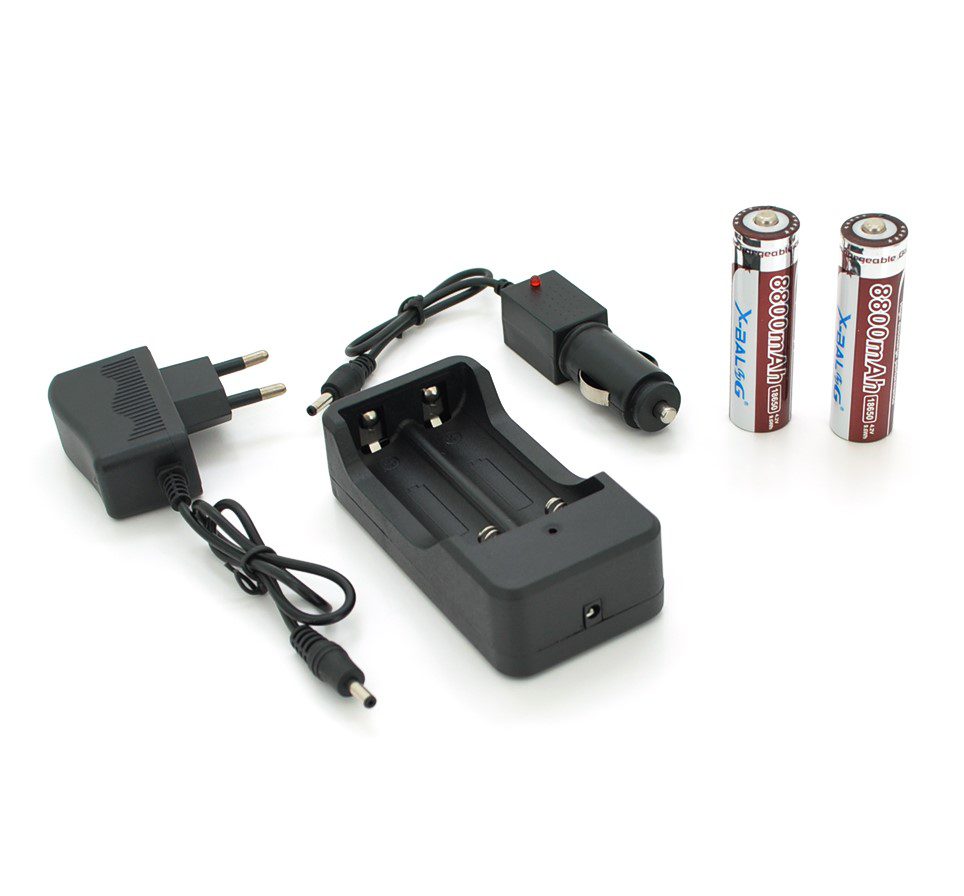 - Комплектация: фонарик / 2 x 18650 / ЗУ 220V / АЗУ / коробка