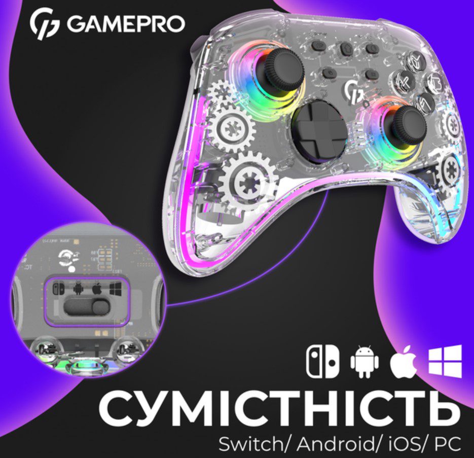 Отзывы Геймпад джойстик GamePro GP-X13-T Xinput Bluetooth/2.4G/USB (Switch/PC/iOS/Android) Transparent