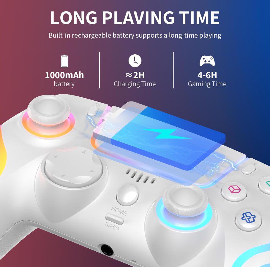 Мощная функция 6-Axis Gyro Sensor: Предлагает точное управление движением для захватывающего игрового опыта, позволяя вам вращаться и маневрировать легко во время геймплея. Двойная обратная связь вибрации: усиливает реализм с чувствительными эффектами вибрации.