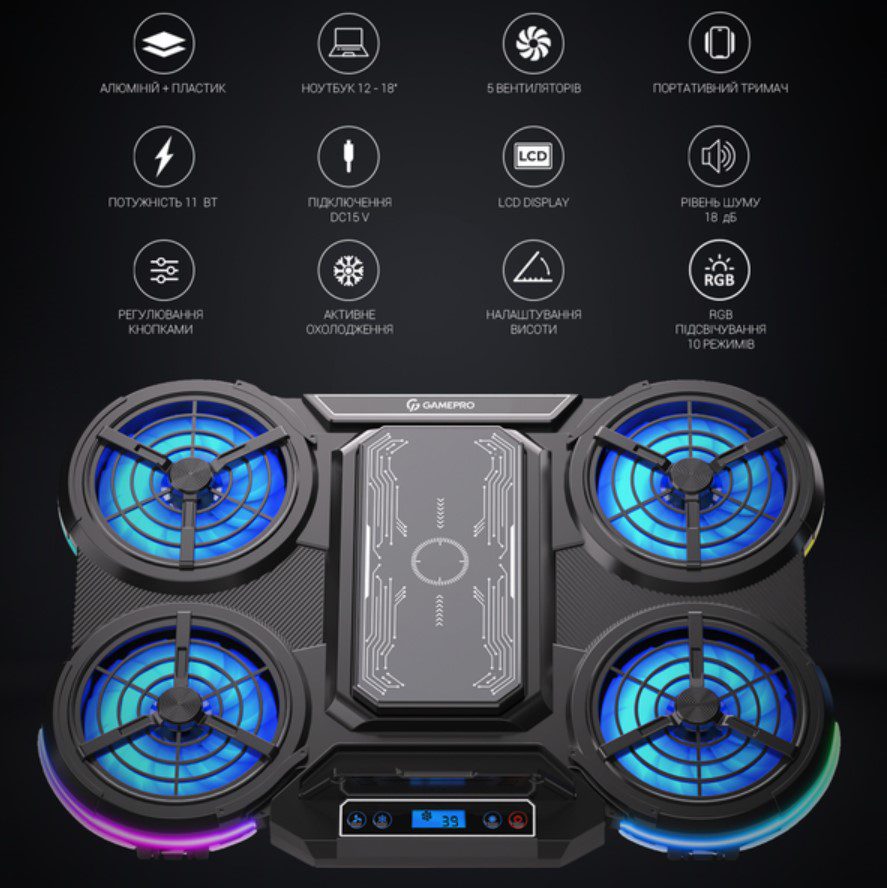 Хотите купить Охлаждающая подставка для ноутбука до 18 дюймов GamePro GPCP-1450 5xfans? Обращайтесь, поможем определится с покупкой!