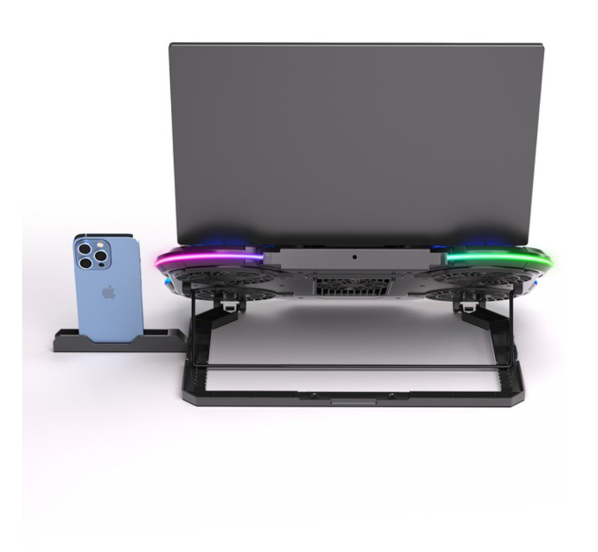 - С помощью 10 различных режимов RGB-подсветки можно настроить подставку в соответствии со своим настроением или рабочим окружением. С использованием материалов высокого качества, таких как ABS и алюминиевый сплав, эта подставка не только эффективна, но имеет стильный и надежный дизайн. Удобство, эффективность и стиль объединились в одном продукте для максимального комфорта в использовании ноутбука.