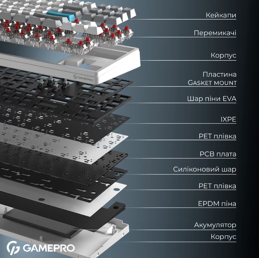 GamePro Asgard Ragnar – беспроводная 87% механическая клавиатура, сочетающая компактность, премиальные материалы и максимальный комфорт печати. Тихие смазанные Keychron Super Switch Red и gasket-mount конструкция с 6 слоями шумопоглощения обеспечивают мягкий ход и глухой, приятный звук. Три режима подключения – USB-C, Bluetooth 5.2, 2.4 ГГц, а батарея 4000 мАч гарантирует длительную автономность. PBT Cherry кейкапы, RGB-подсветка и hot-swap делают Ragnar универсальным и долговечным выбором. Стильная, тихая и технологичная – клавиатура для настоящего комфорта каждый день.
