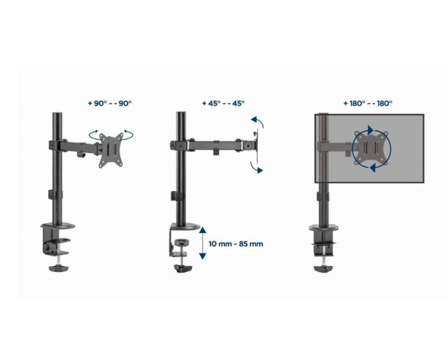 - Работает практически с любым LCD-монитором (макс. 32″/9 кг)