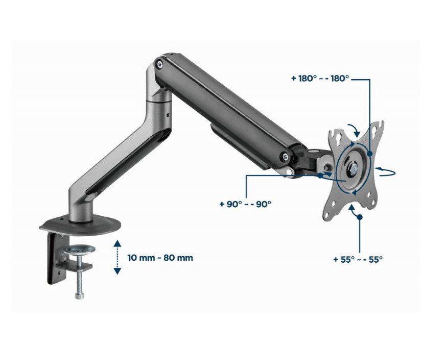 Прочные регулируемые газовые пружины подходят для мониторов весом 2-9 кг.