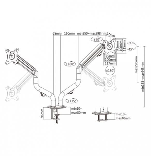 Прочные регулируемые газовые пружины подходят для мониторов весом от 2 до 8 кг