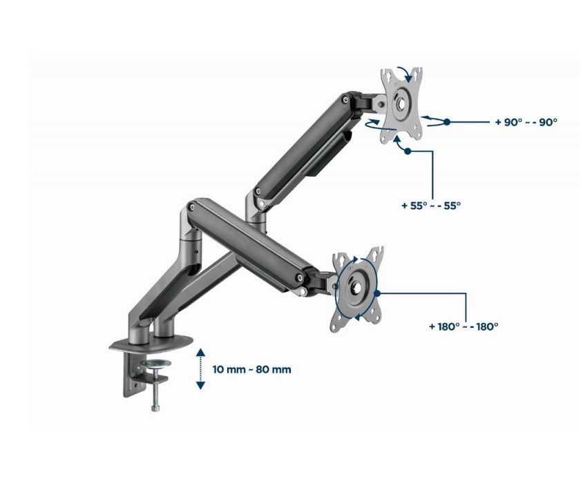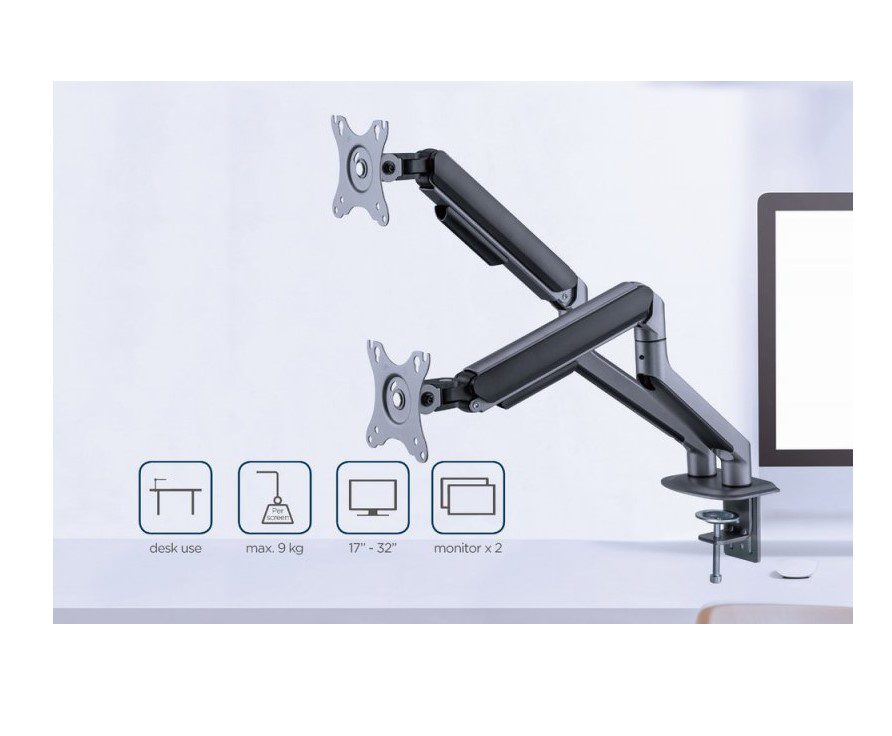 Прочные регулируемые газовые пружины подходят для мониторов весом 2-9 кг.