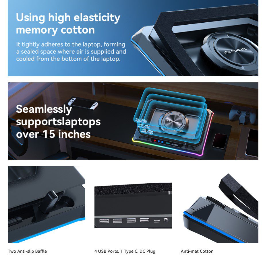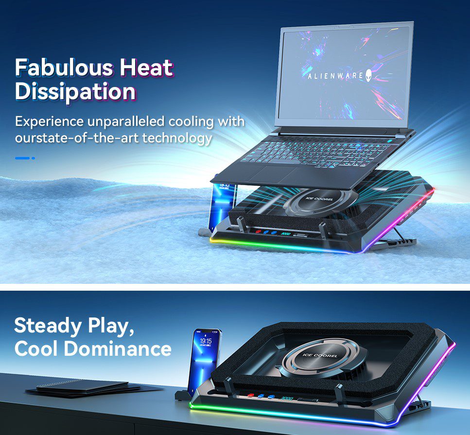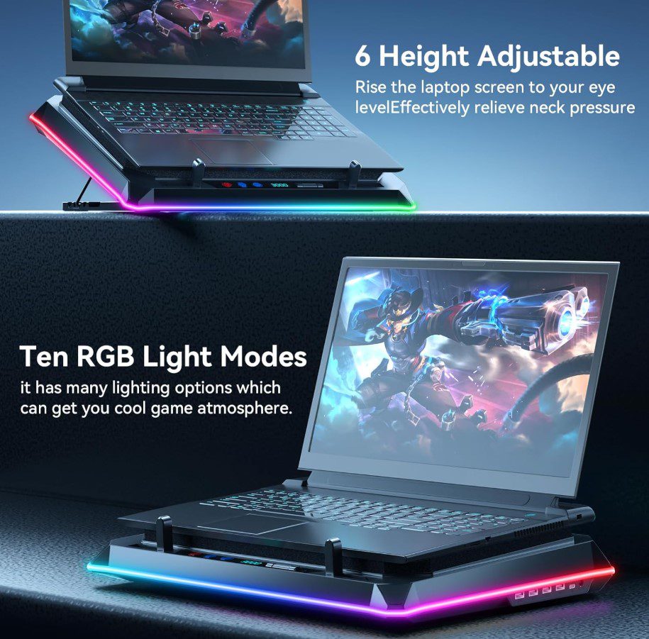 10 режимов RGB-подсветки: RGB-подсветка охлаждающей подставки для ноутбука выглядит красиво, и множество вариантов подсветки помогут создать классную игровую атмосферу.