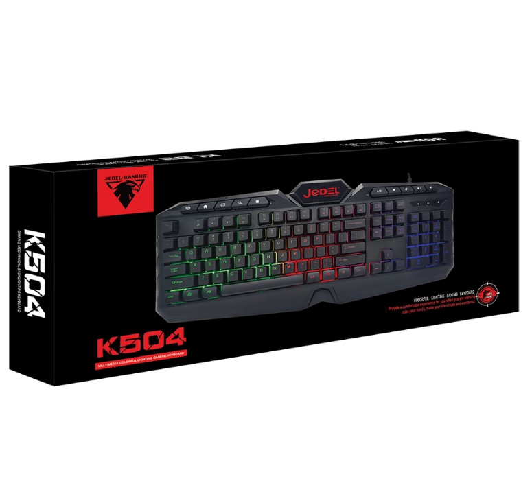 JEDEL K504 – эргономичная игровая клавиатура, которая обеспечит вам новый уровень комфорта в многочасовых компьютерных баталиях. Стильный внешний вид и красочная светодиодная подсветка сделают ее отличным дополнением геймерского рабочего места.