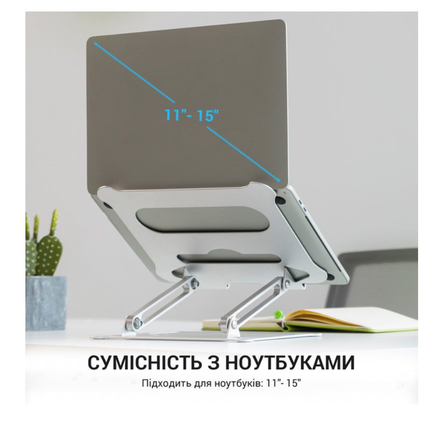 Gодставка для ноутбука OfficePro LS610. Эргономичная алюминиевая подставка с регулируемой высотой и углом наклона. Поднимает ноутбук до уровня глаз, уменьшая нагрузку на шею и спину. Открытая конструкция улучшает вентиляцию. Легкая, сложная с силиконовыми накладками для фиксации и защиты устройства. Идеальное решение для удобной и правильной работы за ноутбуком.