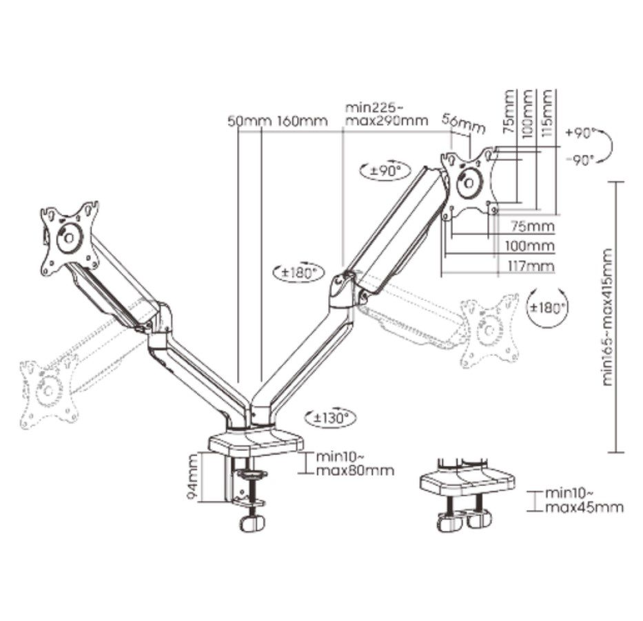 Кронштейн настольный для двух мониторов 17-32 дюйма OfficePro MA-502 Black.
