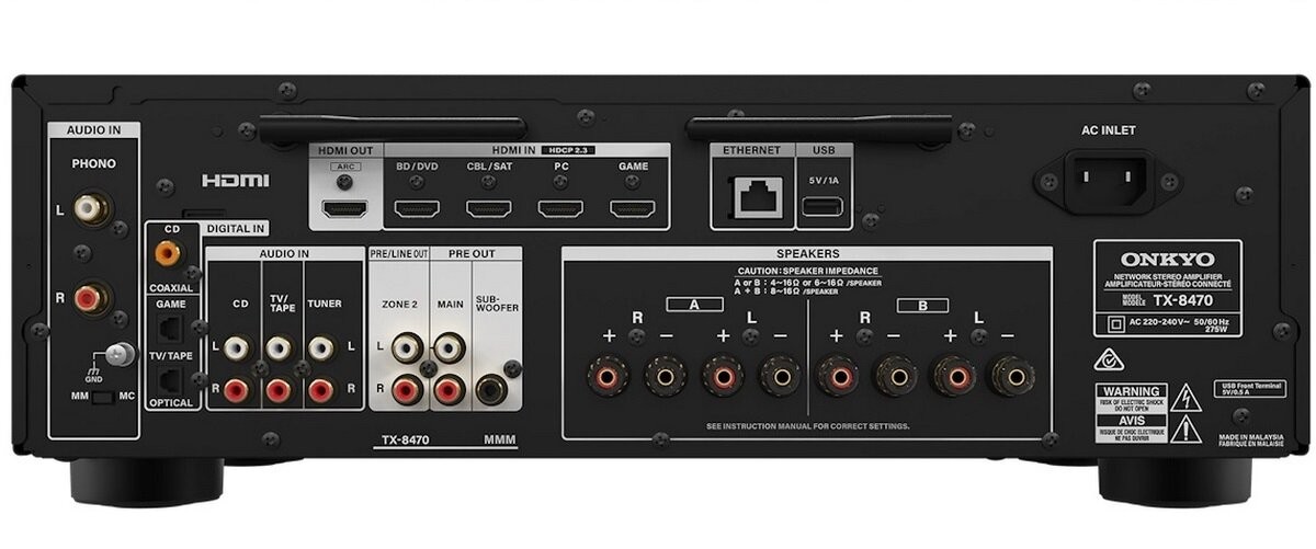 Особое внимание уделено удобству использования с виниловыми проигрывателями — имеется выделенный MM/MC фонокорректор с изолированной схемой, что делает TX-8470 привлекательным выбором для любителей аналогового звука.