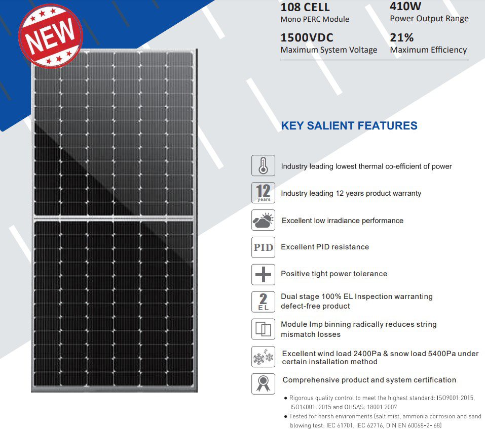 - Максимальная мощность (Pmax): 410 Вт