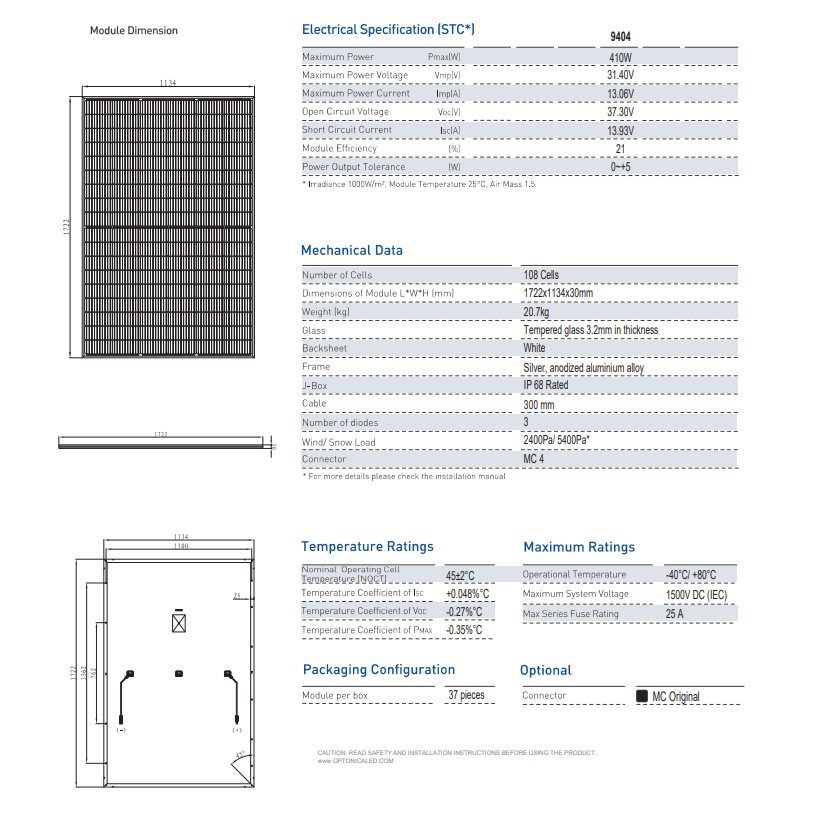Хотите купить Солнечная панель Optonica FV410A1 Solar Panel 410W Mono Solar (2шт), 1722x1134x30? Обращайтесь, поможем определится с покупкой!