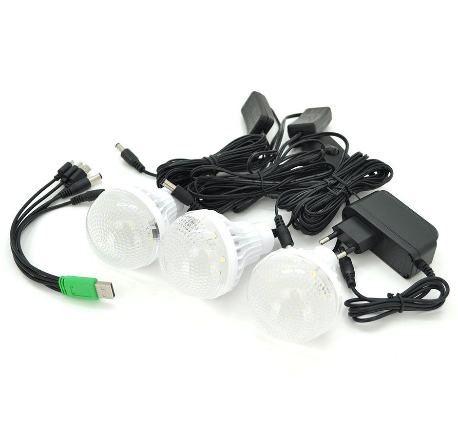 Готовое компактное решение Power bank для освещения дома и зарядки устройств на солнечной энергии. Солнечная панель, преобразователь, аккумулятор 5V 4AH с выходом USB 1A, светодиодная лампа 90LM (3шт) и набор переходников сделает Ваш дом или кемпинг независимым от электросети.
