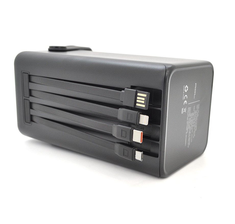 - Встроенные кабели: Lightning, USB-C, Micro-USB