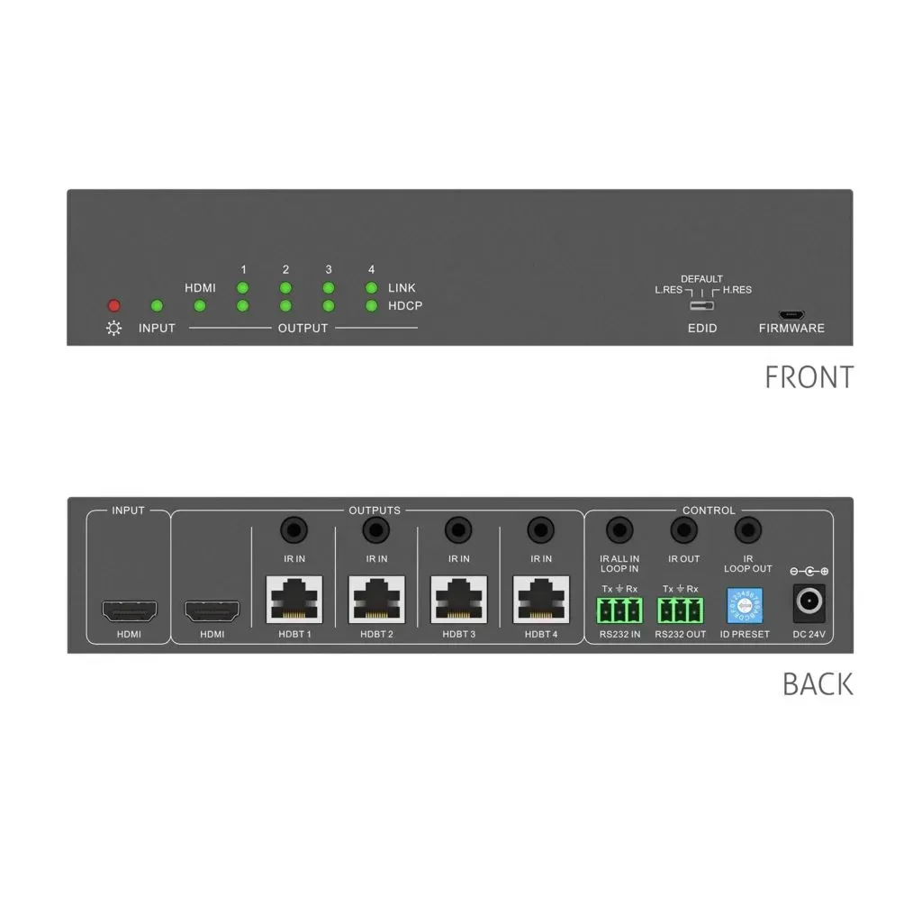 - 1 HDMI вход / 4 HDBaseT выхода