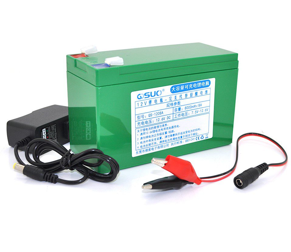 Аккумуляторная батарея литиевая QiSuo QS1208ACH 12V 8Ah Li-ion 18650, + зарядное 12,6В 1А