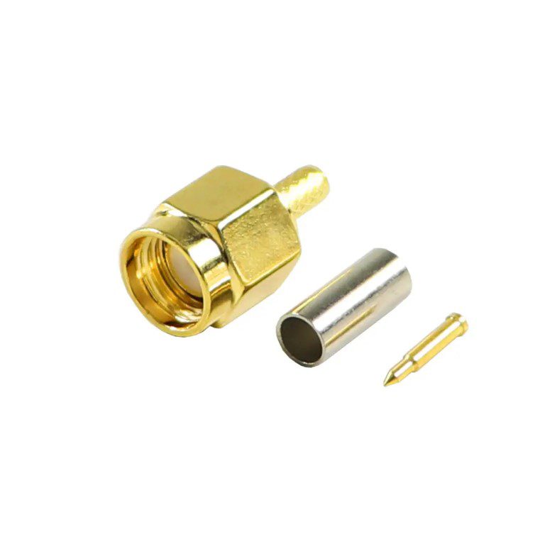 Разъем ВЧ SMA Male для кабеля RG-316 RG-188 RG-174 LMR100 SFF50-1 SFF50-1.5 и аналогов с наружным диаметром изоляции до 2.52 мм и центральной жилой 0.5 мм. Центральный пен монтируется на центральный провод кабеля методом пайки. Разъем зажимается на кабеле обжимным инструментом (кримпером).