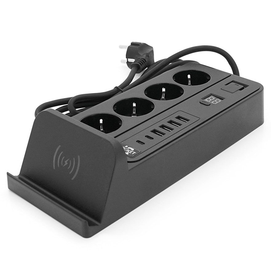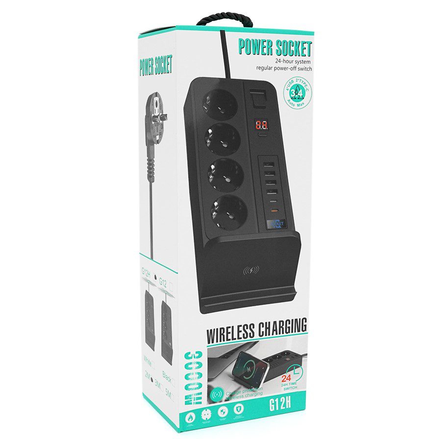 Отзывы Сетевой фильтр-удлинитель Voltronic G-12H, 4 Socket+4 USB 3,2А+2 Type-C +беспроводная зарядка +таймер, 2м, Black