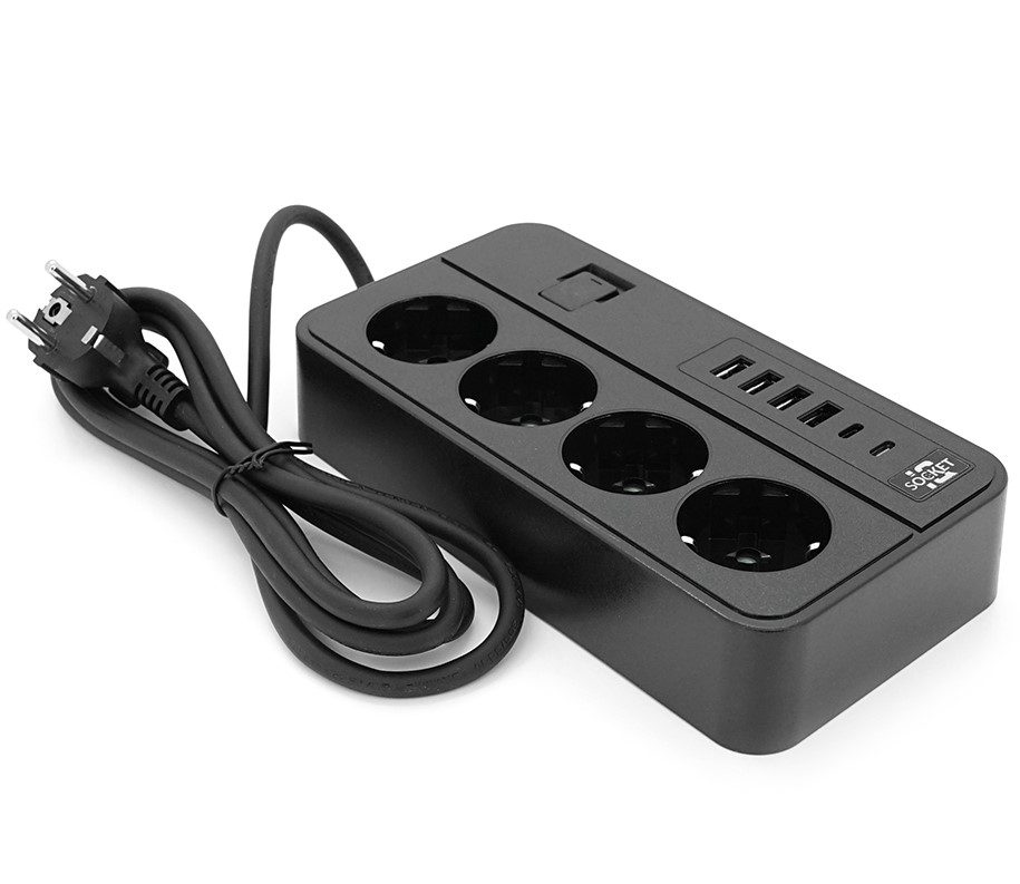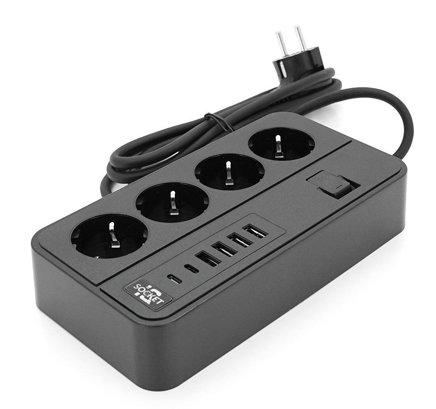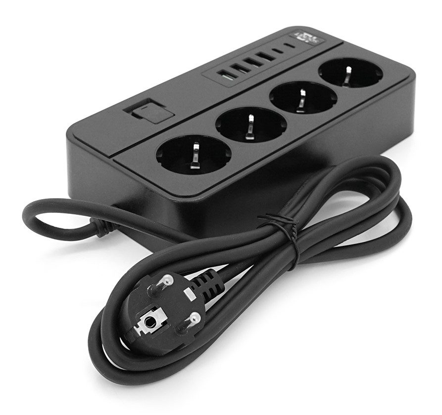 - Количество розеток: 4 USB, 4 вилки, 2 Type-C