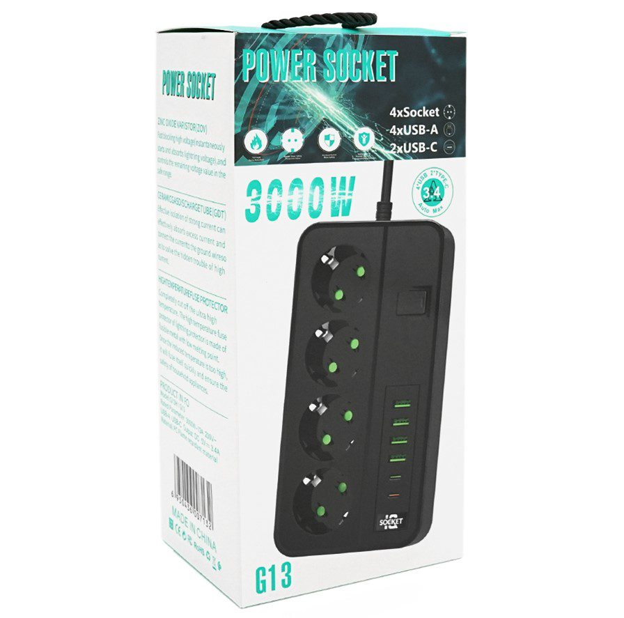 Отзывы Сетевой фильтр-удлинитель Voltronic G-13, 3000W, 4 Socket + 4 USB 3,2А + 2 Type-C, 2м, Black