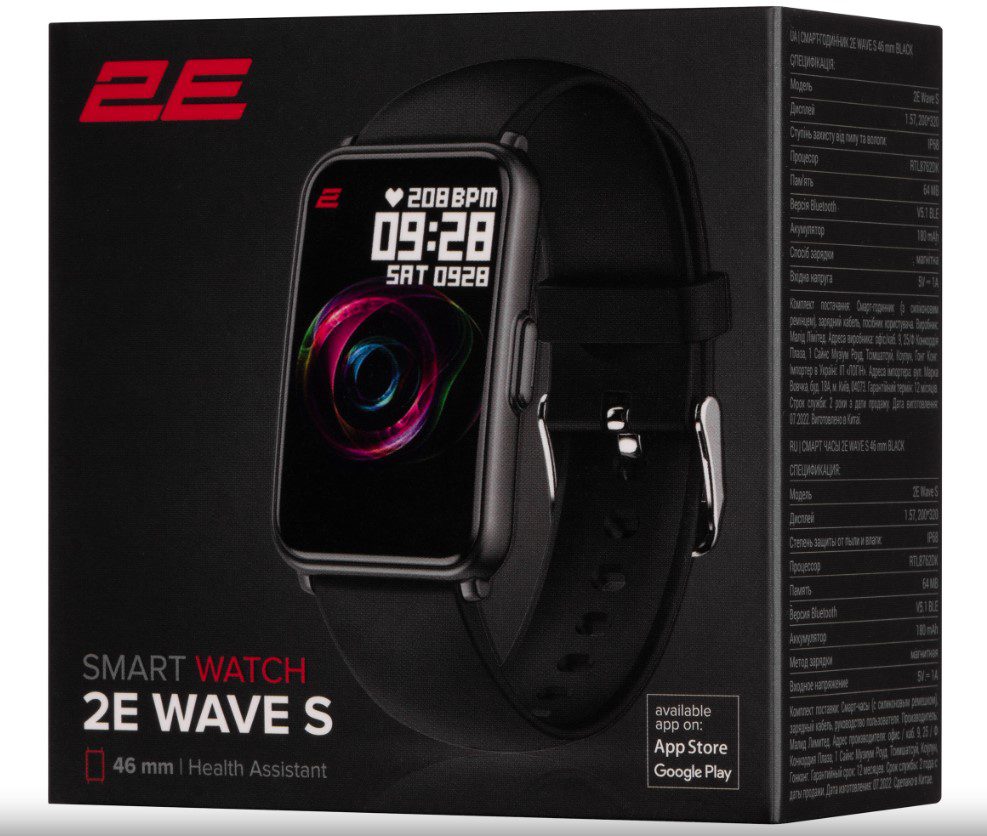 - 2E Wave S имеют много функций и возможностей ежедневно: широкий выбор спортивных режимов тренировки, отслеживания сна, измерение артериального давления и пульса в течение дня, будильник, шагомер и т.д.