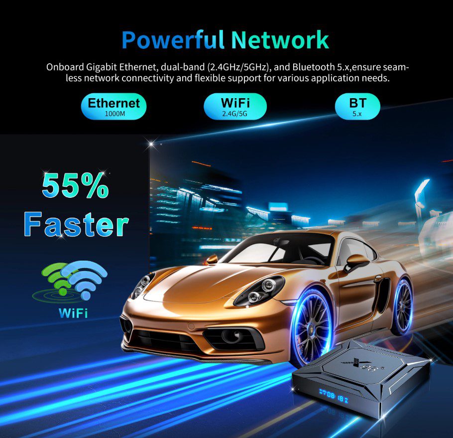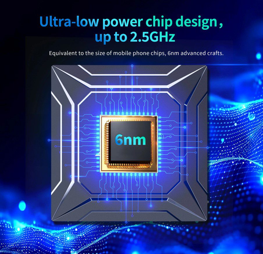 - Процессор Amlogic S905X5M (4x Cortex-A55, 30K DMIPS) — на 21% быстрее предыдущего поколения (S905X4)