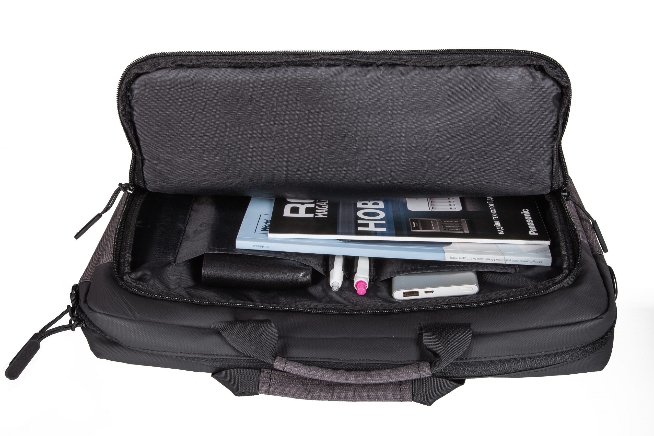 Сумка для ноутбуков 15.6-16″» 2E Slant (2E-CBN9085GB). Легкая и компактная сумка c классическим черно-серым цветом подходит для ежедневного использования. Изготовлена из прочного водоотталкивающего нейлона в комбинации с полиуретаном. Комплектуется плечевым ремнем с амортизирующей накладкой. На задней стенке имеется ремень для фиксации сумки на ручке чемодана.