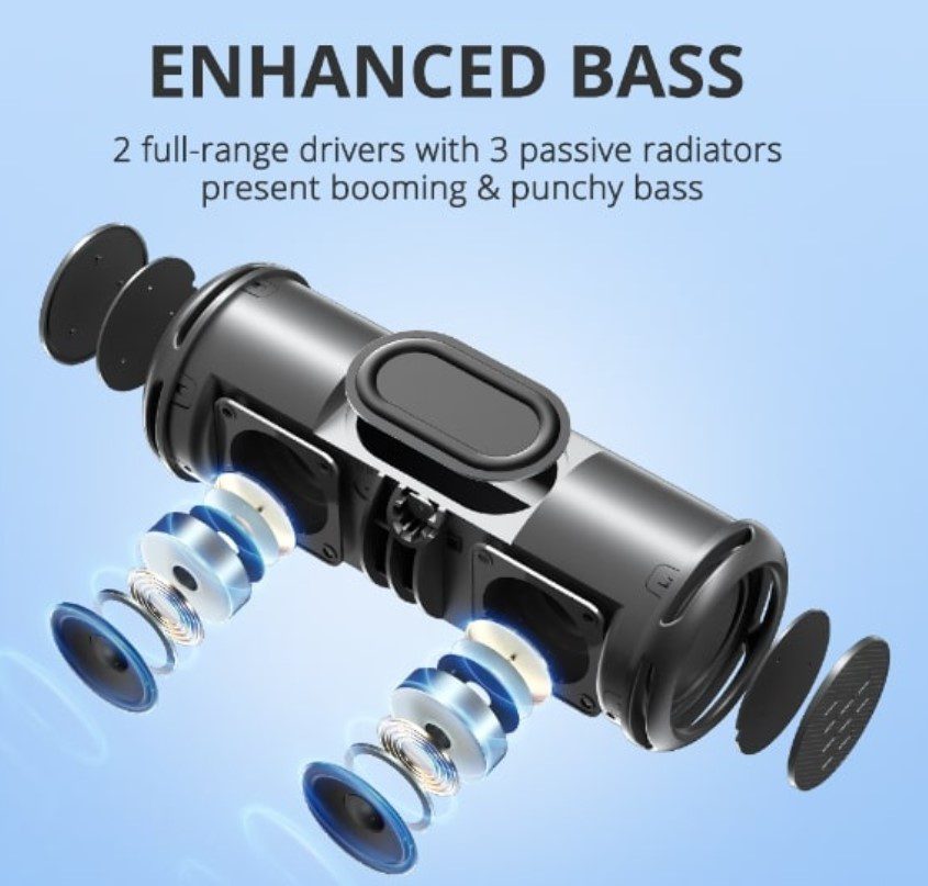 - Относительно качества звука, то колонка обеспечивает универсальное стерео-звучание с мощным низкочастотным динамиком и двойным динамиком верхних частот Благодаря запатентованной компанией Tronsmart технологии SoundPulse эта компактная колонка обеспечивает мощный звук для басов.