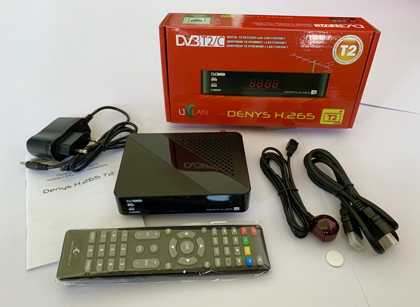 - Приемник Denys H.265 T2 с адаптером питания 5 Вольт
