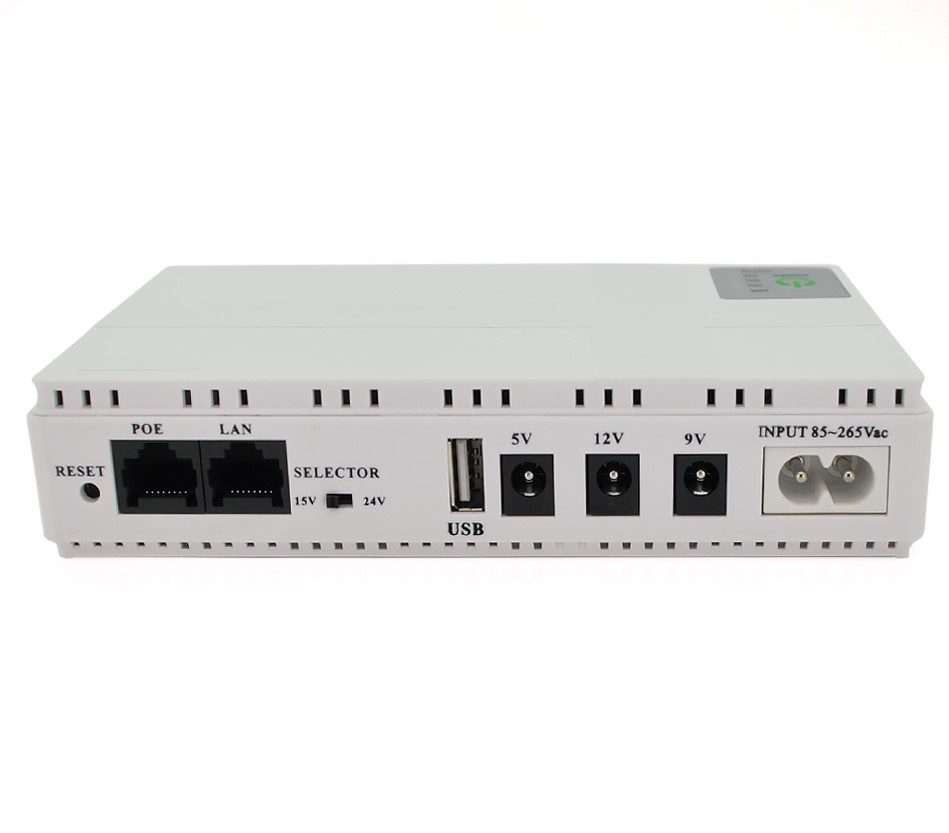 UPS DC1018P – портативный, многофункциональный источник бесперебойного питания для обеспечения питания wifi роутера и других мелких электроприборов и аппаратуры, имеющих параметры питания: 5В с силой тока до 2А; 9В или 12В с силой тока до 1А (маршрутизаторы, терминалы, медиаконвертеры, аквариумное оборудование) при экстренном отключении электроснабжения в сети. DC1018P имеет эргономичный дизайн, незначительные габариты и вес, обеспечивающие удобство применения в бытовых условиях.