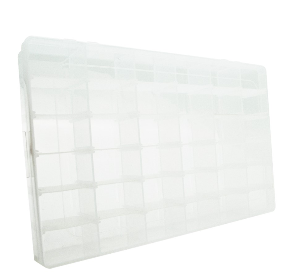 Пластмассовый ящик отлично подойдет для гармоничного размещения радиодеталей, рыболовных снастей и подобного. Размеры 270x45x175мм, 36 отделений