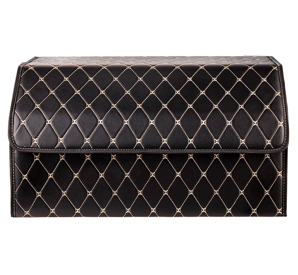Складной автомобильный органайзер — это удобное и стильное решение для организации хранения различных предметов в вашем автомобиле. Он обеспечивает компактное хранение и легкость в установке, а также стильный внешний вид благодаря сочетанию черного и золотистого цветов.