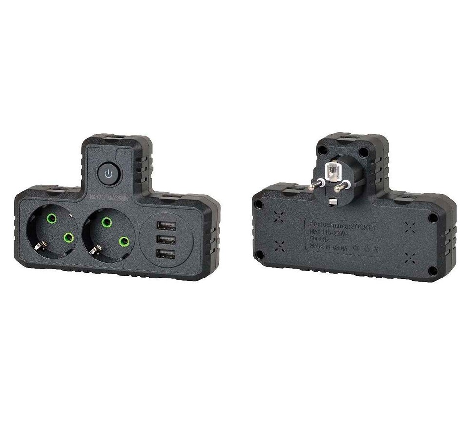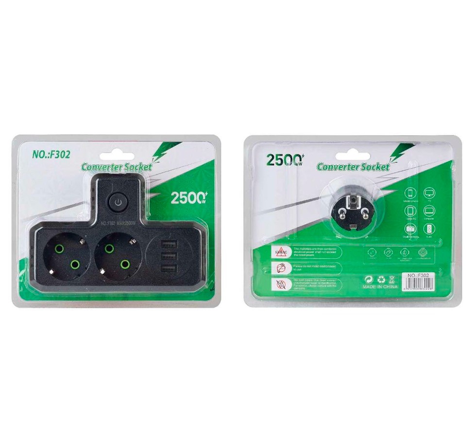 Т-образная розетка F302-Black с заземлением — это удобное решение для подключения сразу нескольких устройств к одной розетке. Она оснащена двумя розетками для стандартных электроприборов и тремя USB-портами для зарядки мобильных устройств, планшетов и других гаджетов. Компактный дизайн и высокая мощность делают ее идеальной для дома, офиса или путешествий, где требуется одновременная работа нескольких устройств.