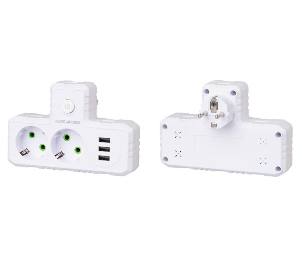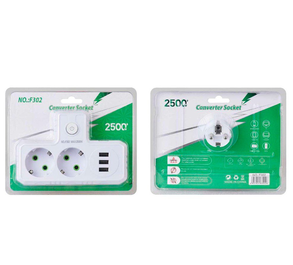 Т-образная розетка F302-White с заземлением — это удобное решение для подключения сразу нескольких устройств к одной розетке. Она оснащена двумя розетками для стандартных электроприборов и тремя USB-портами для зарядки мобильных устройств, планшетов и других гаджетов. Компактный дизайн и высокая мощность делают ее идеальной для дома, офиса или путешествий, где требуется одновременная работа нескольких устройств.