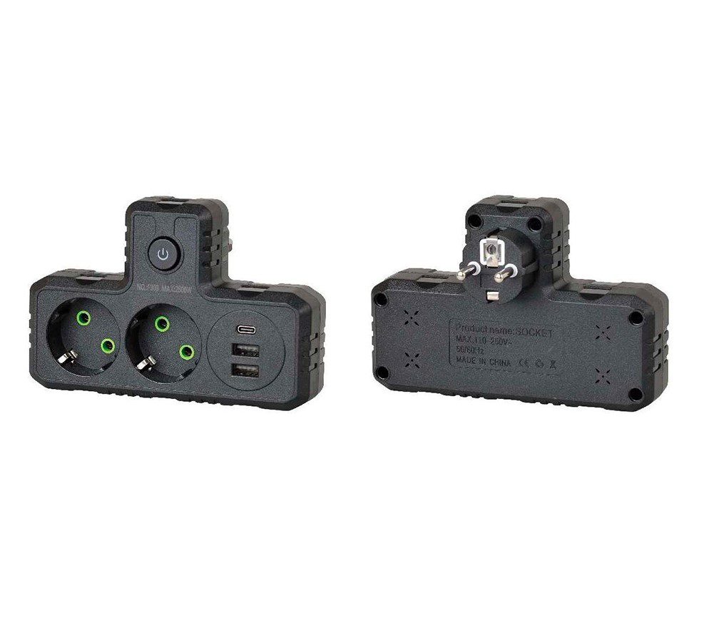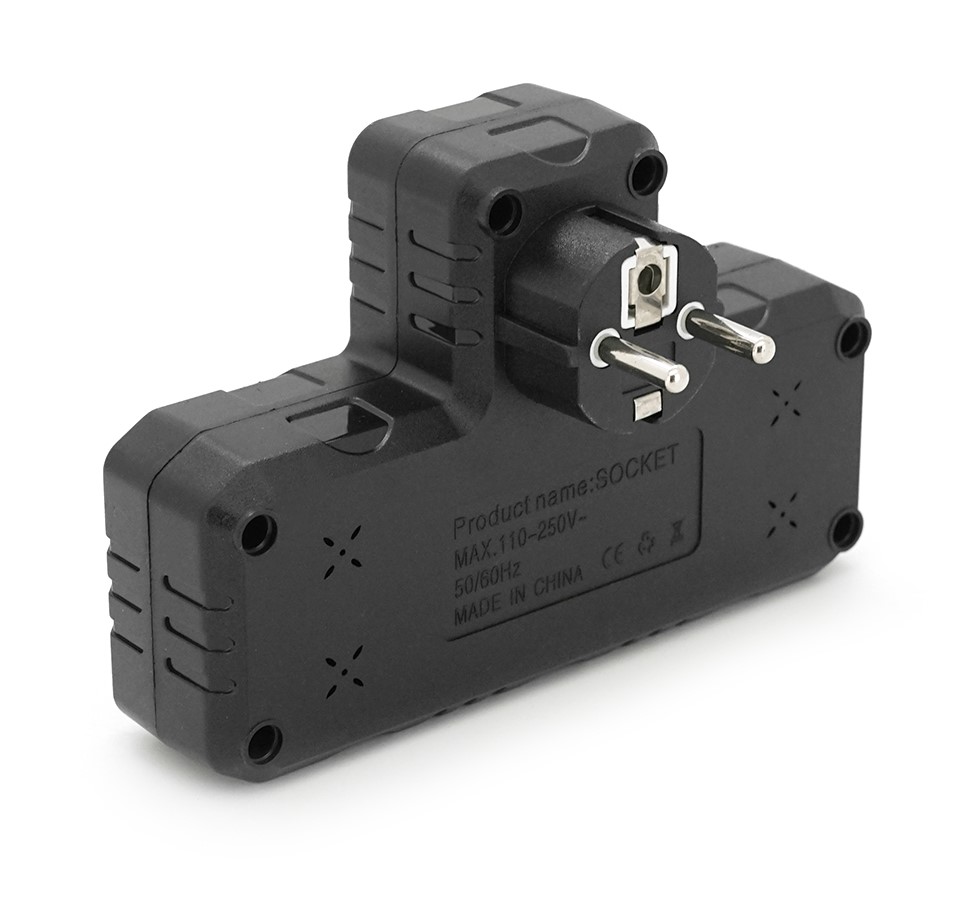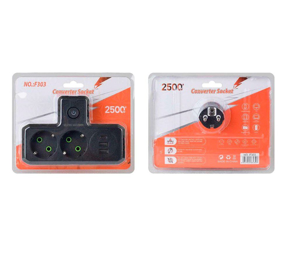 Т-образная розетка F303-Black с заземлением — это удобное решение для подключения сразу нескольких устройств к одной розетке. Она оснащена двумя розетками для стандартных электроприборов и тремя USB-портами для зарядки мобильных устройств, планшетов и других гаджетов. Компактный дизайн и высокая мощность делают ее идеальной для дома, офиса или путешествий, где требуется одновременная работа нескольких устройств.