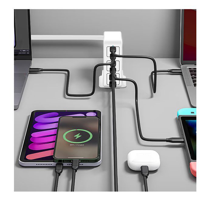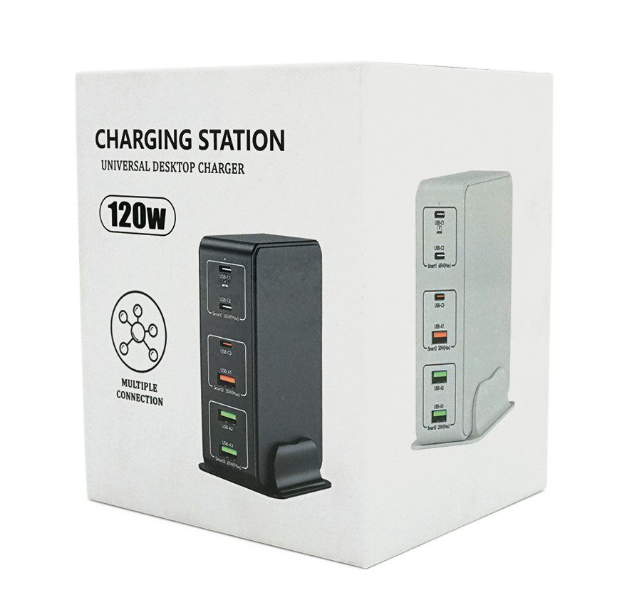 Зарядная станция представляет собой многофункциональное устройство, предназначенное для зарядки различных гаджетов, включая смартфоны, планшеты и компьютеры. С шестью портами для подключения (3USB и 3Type-C) она способна одновременно заряжать несколько устройств, обеспечивая быструю и эффективную зарядку благодаря высокой мощности в 120W. Классический черный дизайн станции будет гармонично смотреться в любом интерьере, а прочные и качественные материалы гарантируют долгий срок службы.