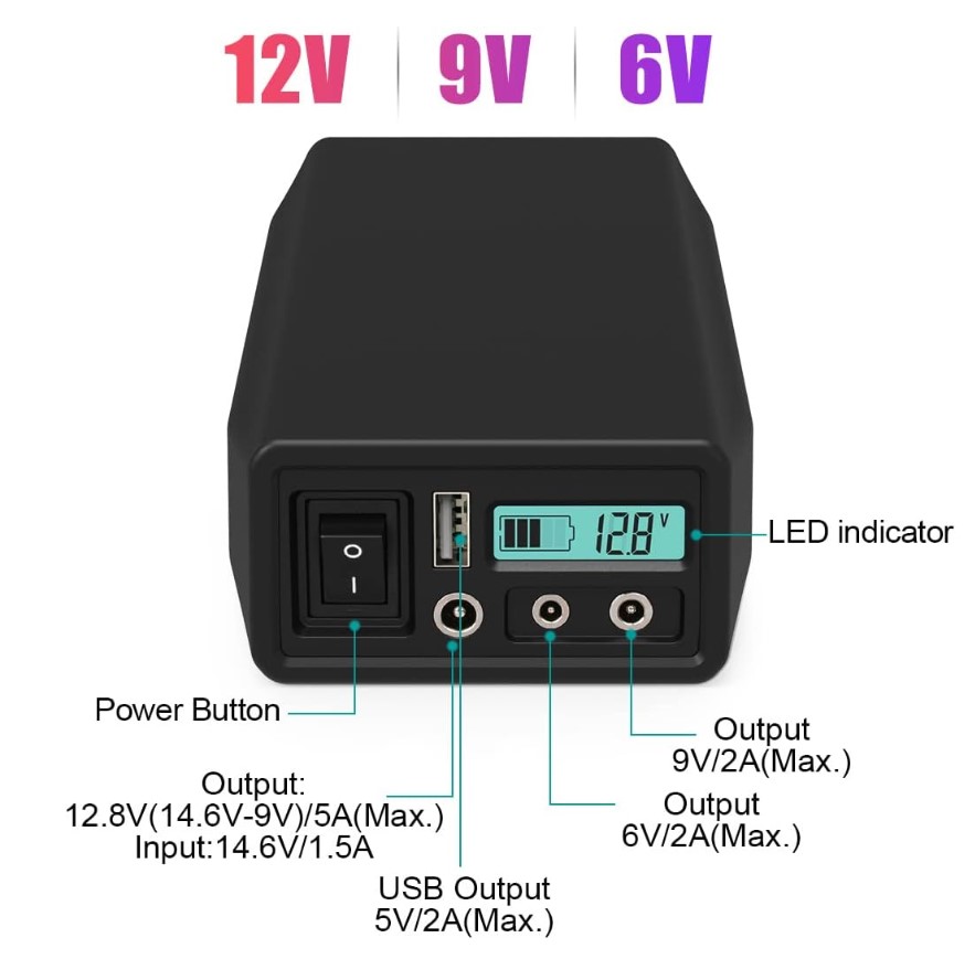 - Выходное напряжение: DC 12В/5А, 9В/2А, USB 5В/2А