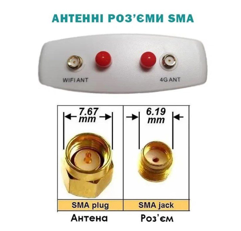 - За прием сотового сигнала и раздачу Wi-Fi отвечают две съёмные антенны SMА стандарта. При соответствующей необходимости к роутеру могут быть также подключены и антенны других стандартов (в том числе MIMO с использованием соответствующих переходников).