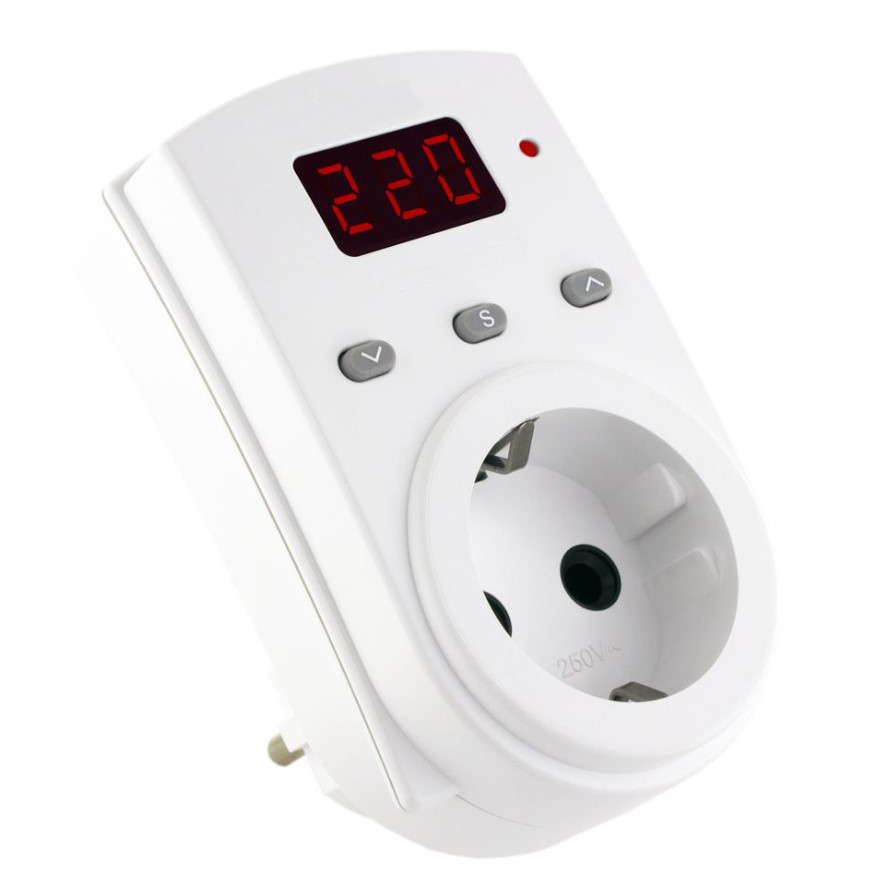 Устройство постоянно анализирует напряжение в сети и в случае выхода напряжения за установленные пределы происходит отключение подключенных приборов.