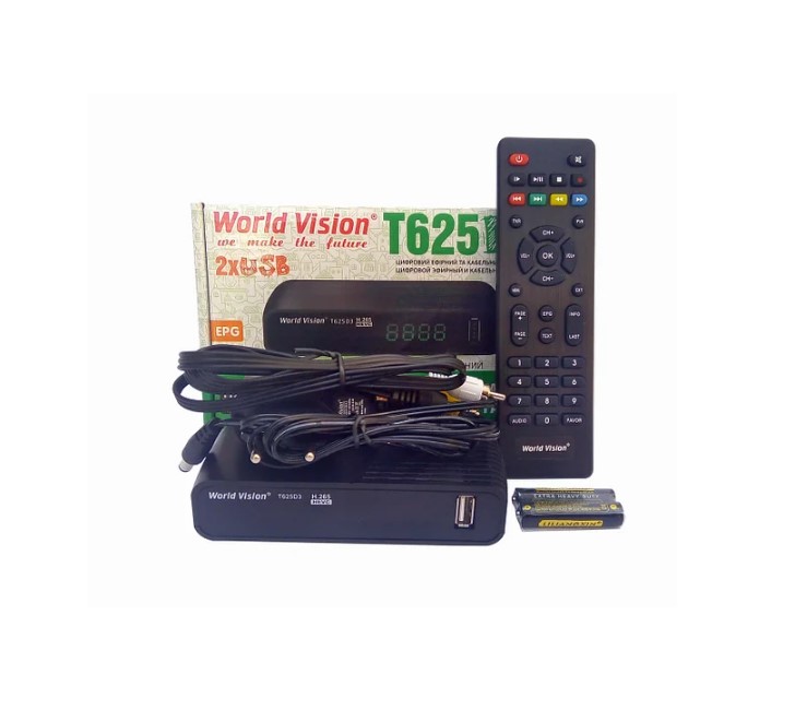 World Vision T625D3 HEVC — хит 2021 года, телеприставка с поддержкой кодека H.265, новая комбинированная модель World Vision T625D3 базируется на высокопроизводительном процессоре GUOXIN GX6702S5, поддерживает прием цифрового ТВ в стандартах эфирного DVB-T/T2 и кабельного DVB-C телевидения. Данная модель представляет собой обновлённую модификацию телеприставки T62D3, но уже с новым аппаратным обеспечением и поддержкой кодека H.265. Новая графическая оболочка которая по удобству управления не уступает предыдущей, все программные изменения тщательно проработаны и изменены только на повышение стабильности работы нового программного обеспечения.
