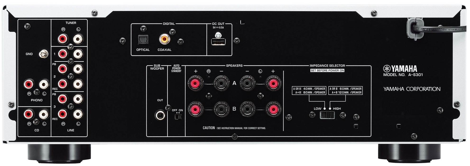 Главной отличительной особенностью является наличие пары цифровых входов, что позволяет подключать устройство не только к аналоговым источникам, но и к ЖК телевизору или игровой приставке. Кроме того, имеется порт USB, предназначенный для питания Bluetooth-адаптера Yamaha YBA-11, также через него можно подзаряжать любое другое портативное устройство.